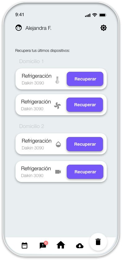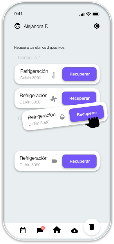 Una de las principales premisas a la hora de diseñar la aplicación ha sido reducir el número de movimientos necesarios para completar una acción. Para ello se ha habilitado una sección que permite recuperar configuraciones eliminadas y que ayudan al usuario a ahorrar tiempo.