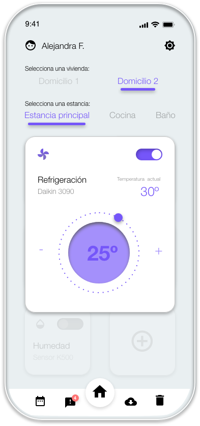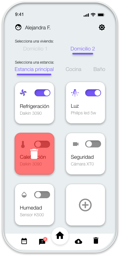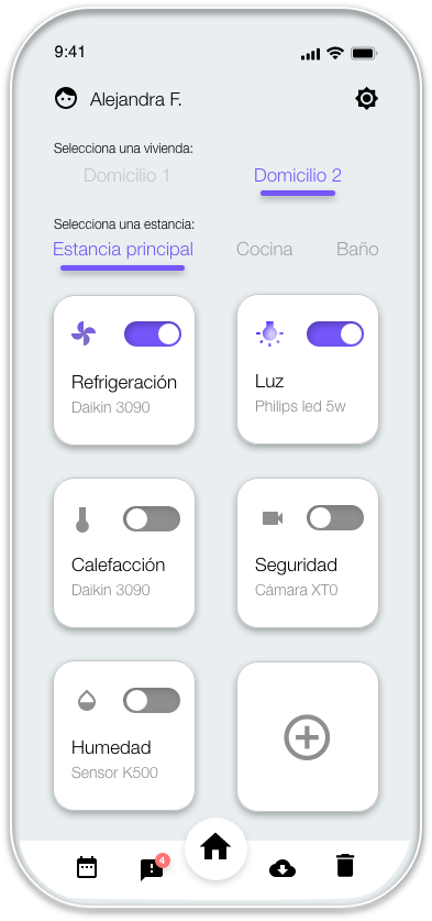 Cecilia de 65 años posee dispositivos conectados de seguridad y le gustaría tener el control de todos los dispositivos de manera sencilla. Necesita que la propia aplicación pueda avisarla en los momentos en los que se activan los dispositivos.