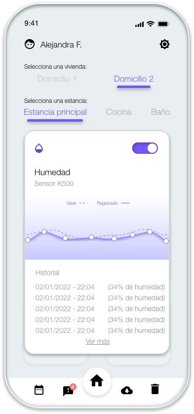 El usuario puede acceder a un histórico de registros en aquellos casos cuyos dispositivos registren información ya sean cámaras de seguridad, sensores de humedad u otros dispositivos similares.