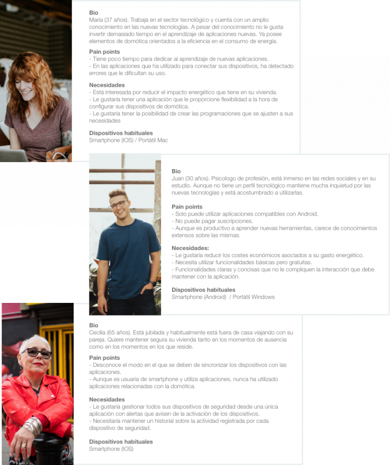 Para el proyecto se ha utilizado el recurso de las entrevistas para profundizar en las necesidades de algunos de los usuarios que han participado en la encuesta previa. Los participantes son dos personas que han sido usuarios de aplicaciones de domótica y otras dos personas que nunca han utilizado dichas aplicaciones pero les gustaría intentarlo.