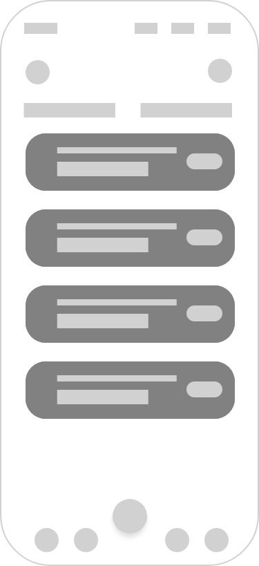 Las primeras fases de ideación se han centrado en encontrar un tipo de diseño sencillo e intuitivo que ayude a encontrar cada uno de los dispositivos de la manera más rápida. Teniendo en cuenta que uno de los aspectos negativos de las aplicaciones actuales era su dificultad de comprensión, se ha utilizado una pequeña fase de iteración sobre los mockups de baja iniciales. De esa manera, intentamos asegurarnos de que el diseño final tiene una mayor probabilidad de éxito en su uso que otras posibles alternativas.